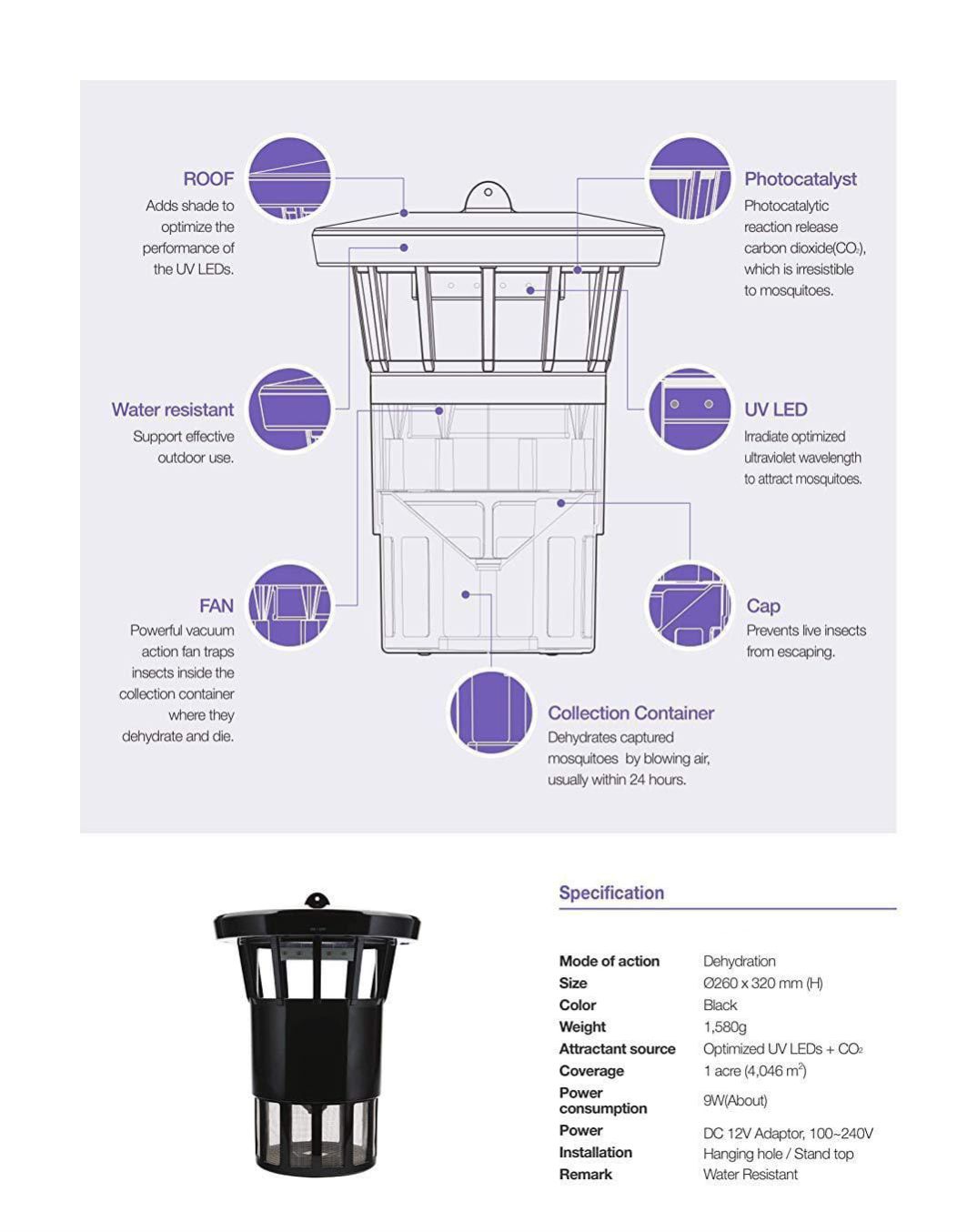| Attractant Source : | Optimized UV LEDs + CO2 |